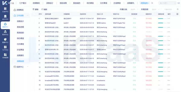 KPaaS流程引擎具备实时监控能力,能够查看流程实例的当前状态、执行路径以及各个节点的耗时情况,为流程运行提供全方位的可视化支持。