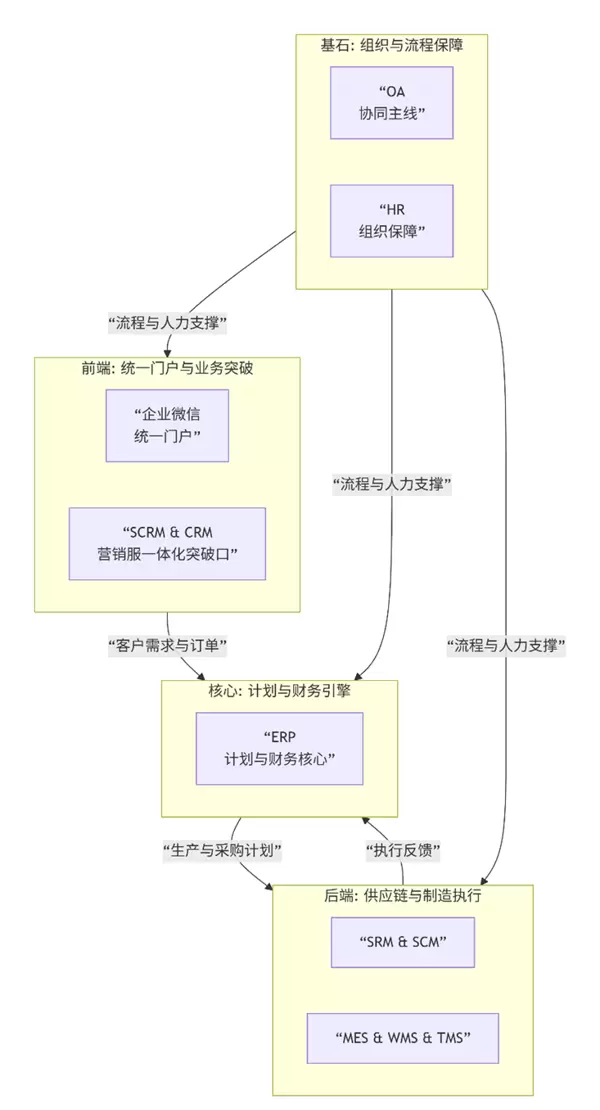 本方案基于务实原则,围绕ERP构建系统集成骨架,辅以企业微信作为前端触点,助力企业进化为反应敏捷、协同高效的数字化有机体,在激烈的市场竞争中占据主动地位。