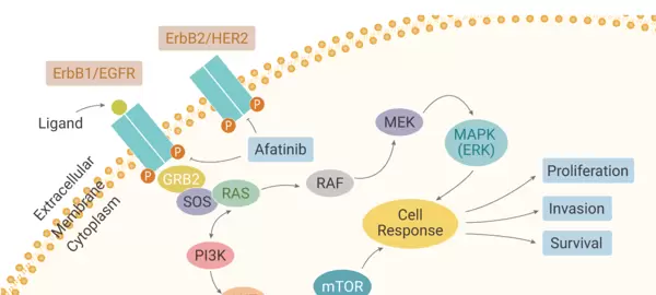 ERK(细胞外信号调节激酶) 主要响应生长因子和促增殖性细胞因子,主导正常细胞的增殖、分化与发育过程。若该通路出现持续性异常激活,则可能导致细胞周期失控,是驱动肿瘤形成的关键机制之一。