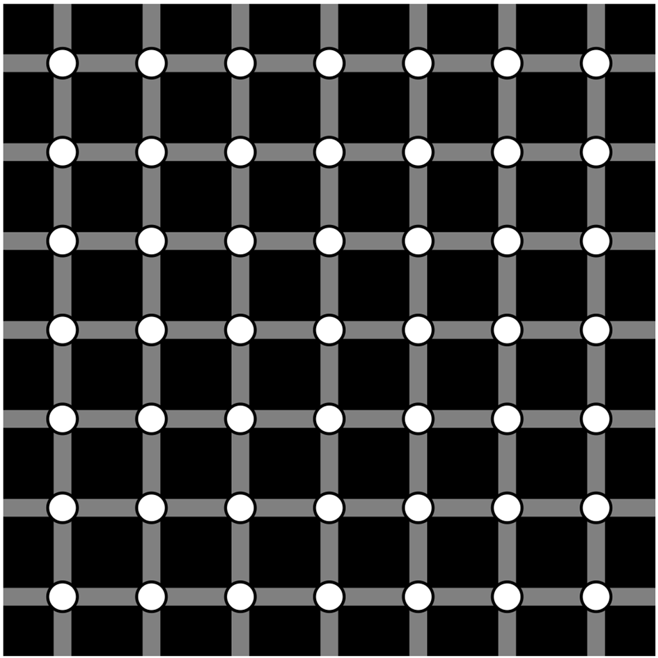 回到开头的问题,如果答案是肯定的,那么你或许会感兴趣,因为你被一种强大的光学错觉欺骗了,这种错觉叫做闪烁网格错觉。当你瞥视网格时,很可能会看到交叉点白色圆圈内出现黑暗、幽灵般的“幽灵”点。这些点似乎会“闪烁”或闪烁,随着眼睛移动时出现又消失,但幻觉最强烈的是,当你试图直视其中一个黑点时:它会消失。实际上,这些点只出现在你的周边视野中。这种现象是由于你眼睛中的神经元处理高对比度区域的方式引起的,本质上是“欺骗”你的大脑,让你感知一个实际上不存在的点。