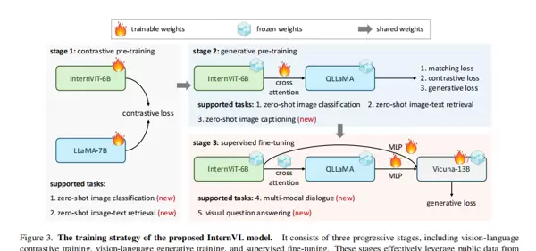 为高效利用多样化数据并保障训练稳定性,InternVL 设计了三阶段渐进式训练流程。3.1 训练流程概览