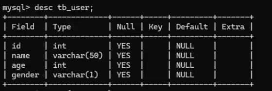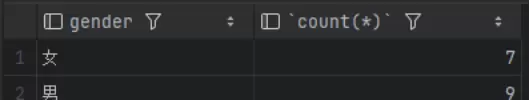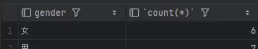 在执行分组查询时,若使用gender作为分组字段,配合count(*)聚合函数进行统计,则name字段在此类语句中不具备实际意义: