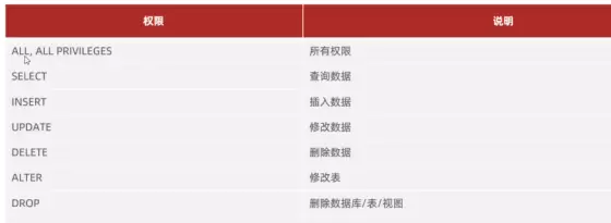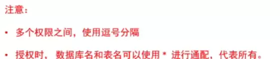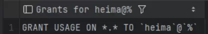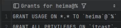 若需要赋予用户特定访问权限,可使用grant命令进行授权。例如,授予用户heima对itcast数据库中所有表的全部操作权限: