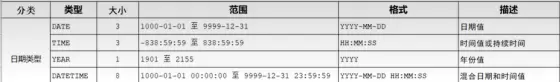 主要包括数值类型、字符串类型和日期时间类型三大类。