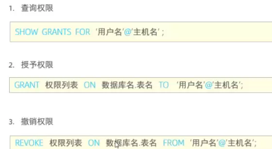 DCL(Data Control Language):数据控制语言,用于创建用户账户及管理数据库访问权限。