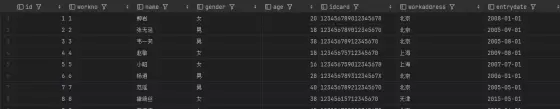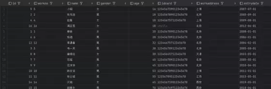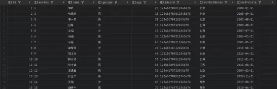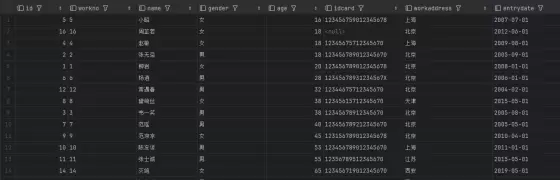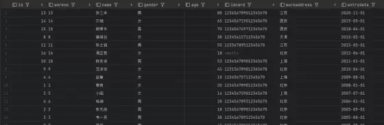 查找身份证号最后一位是 'X' 的员工信息,可以使用模糊匹配: