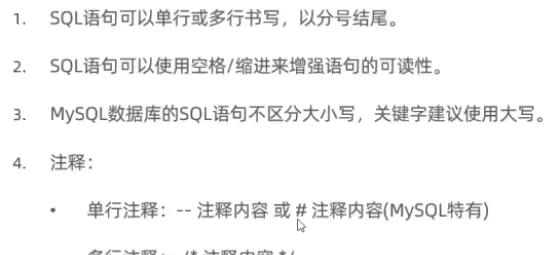 SQL(Structured Query Language)是操作关系型数据库的标准语言,主要包括通用语法规范和多种语句类型:DDL、DML、DQl、DCL。