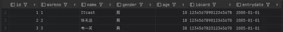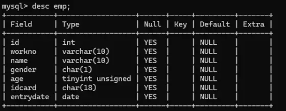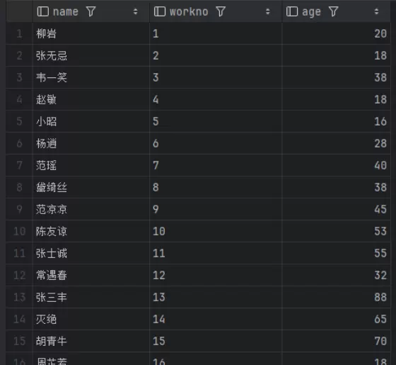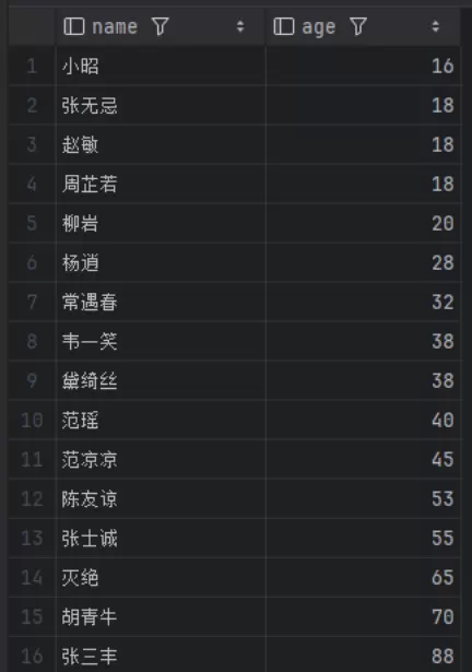 对员工按照年龄进行升序排序(默认为升序,ASC可省略):
