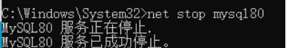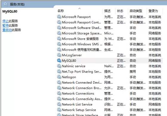 在命令提示符中输入 services.msc,打开系统服务列表,找到名为 MySQL80 的服务项,手动启动或停止服务。