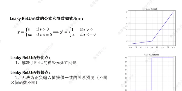 作为 ReLU 的改进版本,Leaky ReLU 在负半轴引入了一个微小斜率,避免了“神经元死亡”现象。其示意图如下:
