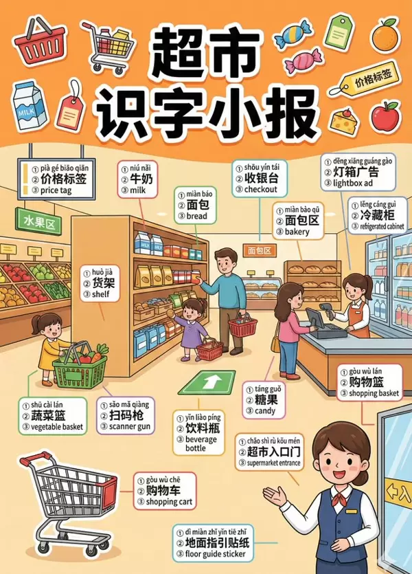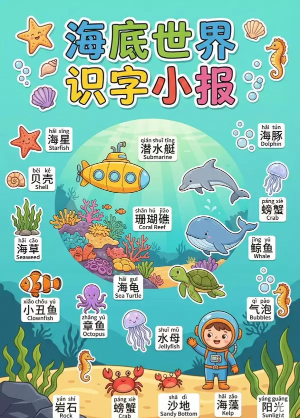 * **风格**:Children's picture book style + Literacy tabloid aesthetic(儿童绘本风 + 识字小报风)