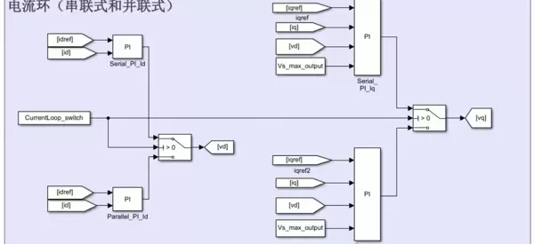 电流环PI参数支持自动整定,提供串联式与并联式两种结构选择。串联式设计响应迅速但对参数变化较敏感;并联式则引入零极点对消机制,增强系统鲁棒性,更适合复杂工况应用。推荐调试流程为:先使用并联结构获取稳定基准参数,再切换至串联结构进行精细优化。