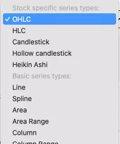 在金融数据可视化方面,Highcharts Stock 提供了对多种金融系列类型的支持,便于展示股票、汇率等时间序列数据。