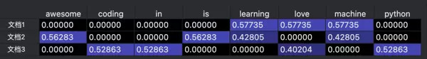 逆文档频率(IDF)则反映了一个词在整个语料库中的普遍性。如果一个词出现在大量文档中(如“is”、“the”等停用词),它的 IDF 值会较低;反之,越稀有的词,其 IDF 值越高,说明更具区分能力。