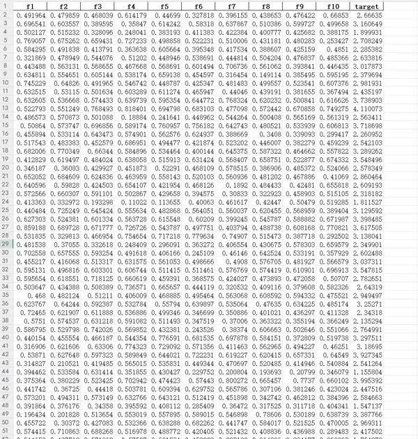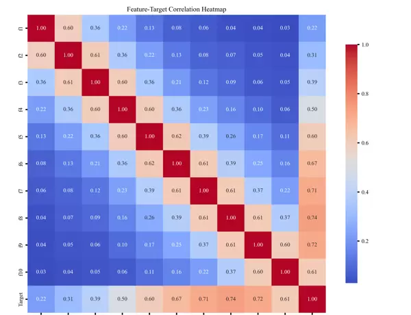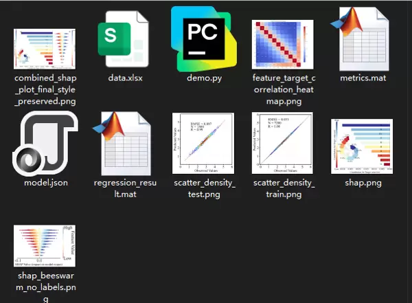 本教程所使用的数据文件为data.xlsx,包含10个特征变量和1个目标变量,适用于多种行业中的回归预测任务。程序运行后,所有图表及处理后的数据将自动保存至当前目录,训练集与测试集的划分比例设定为80%:20%。