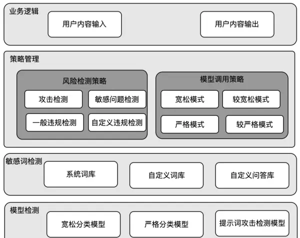 - 对业务模型输出的回答内容再次进行风险复检,确保回应的安全性。若发现敏感信息,则实施脱敏处理;若识别出存在风险,则转为拒答;仅当内容完全合规时,才允许对外输出。