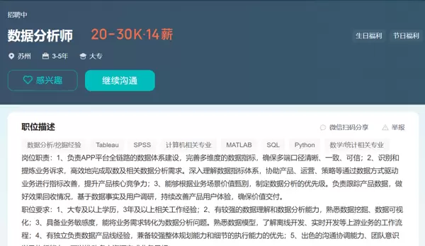 基于这些经历,我想系统整理一下自己在求职过程中积累的经验和思考。以BOSS直聘为例,当我们定位目标岗位后,可以更有针对性地准备面试内容。本文将围绕一个核心岗位展开分析,后续也会持续更新相关内容。以下就是今天要重点解读的职位信息: