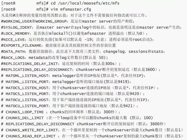 cd /usr/local/moosefs/etc/mfs vim mfsmaster.cfg