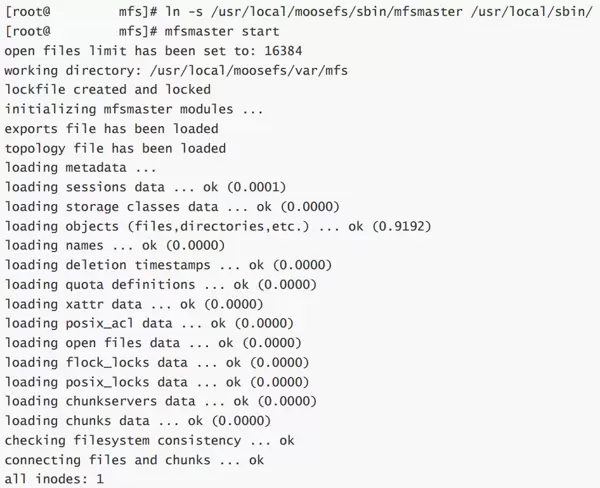 ln -s /usr/local/moosefs/sbin/mfsmaster /usr/local/sbin/ mfsmaster start