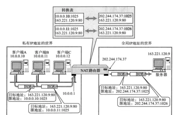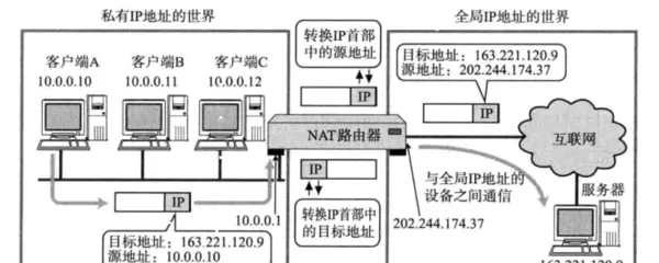 当内网主机(如IP为10.0.0.10)向公网服务器发送数据时,NAT路由器会将其源IP替换为自身的WAN口公网IP(如202.244.174.37)。该数据包随后经由公网路由转发至目标服务器。
