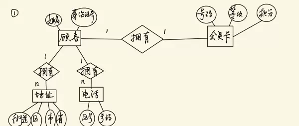 a. 顾客有多个地址和多个电话号码。地址包括省、市、区、街道,电话号码包括区号、号码。