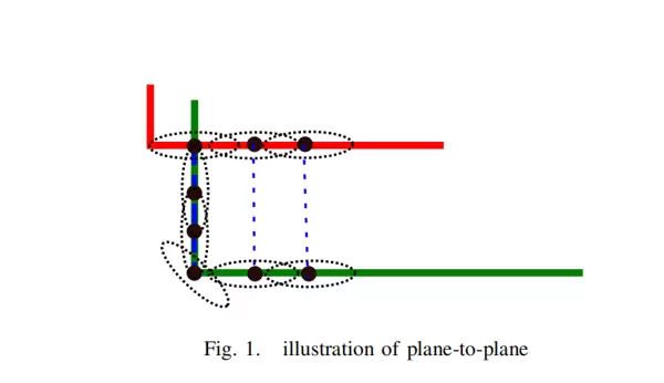 不同于点到点 ICP 最小化误差项 ∑∣T·b_i m_i∣,点到平面方法最小化的是变换后点沿其对应点表面法线方向的投影误差。换句话说,它优化的是残差向量 (T·b_i m_i) 在由表面法线张成的空间上的分量。