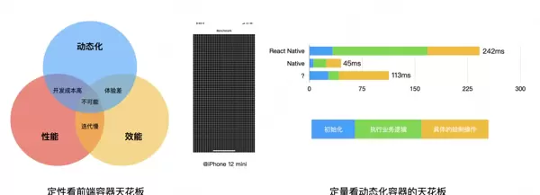 这一结果虽难以令人满意,但原因清晰可循:为实现动态化能力,容器普遍引入了JavaScript解释器及相关通信机制,这些额外层带来了显著的解释开销与跨层调用成本,成为性能落后的主因。