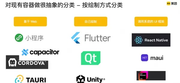 渲染层的选型相对清晰,总体可分为三种路径:复用WebView、自建渲染绘制器、调用系统原生UI框架。