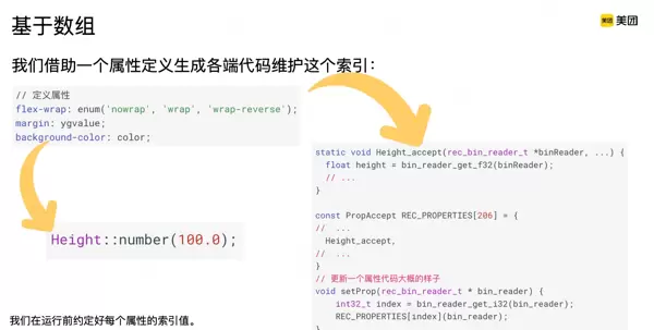 不过,使用索引数组也带来了新的挑战——维护每个属性在数组中的位置索引变得异常复杂。为此,我们引入了属性定义自动生成代码的机制,在编译或构建阶段预先约定好各属性对应的索引值。虽然这要求我们在一定程度上牺牲兼容性,但换来的是运行时更高的执行效率。