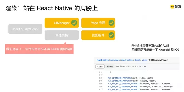 尽管如此,属性设置、数据传递等操作仍可能成为实际运行中的性能瓶颈,这一点在实践中已被反复验证,也是 React Native 社区持续优化的方向之一。基于此判断,我们决定保留 RN 中已被验证有效的核心机制:包括 UIManager 所提供的视图增删改操作模型、Yoga 布局引擎,以及现有的视图组件封装方式。这些模块被完整继承下来,作为 Recce 架构的基础支撑部分。至于为何未沿用 React Native 当前的属性转换逻辑,后文将进一步展开说明。