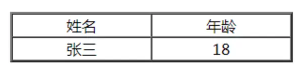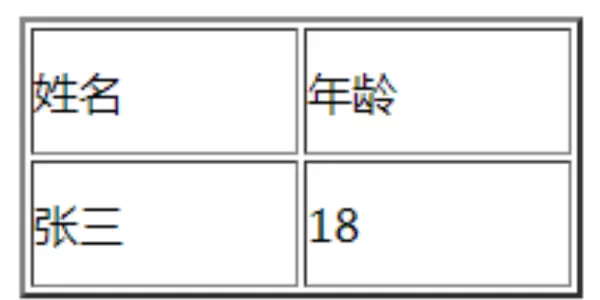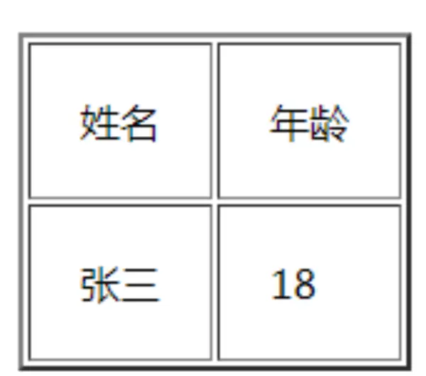 <table border="2"> <tr> <td>姓名</td> <td>年龄</td> </tr> <tr> <td>张三</td> <td>18</td> </tr> </table>