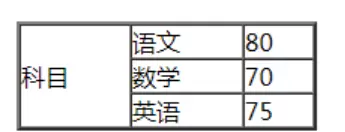 代码解析:第一行第一列中的“科目”设置了 rowspan="3",表示该单元格纵向跨越三行,因此接下来两行的第一列不再重复填写内容,而其余列正常显示对应数据。