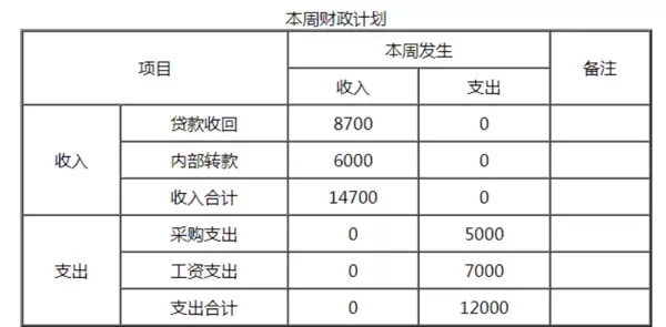 - 表格标题内容为“本周财政计划”;