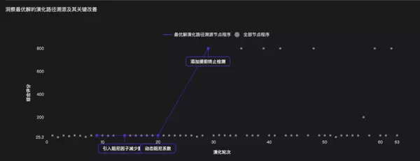 - 突变期: 某个“种群”突然出现反常识策略,评分大幅跃升。
