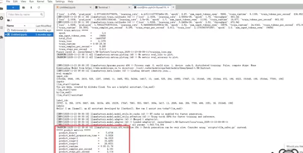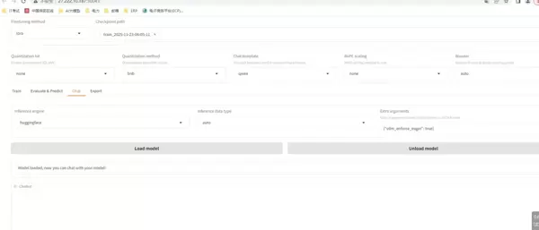 评估完成后,加载已微调的模型实例,进行初步的对话交互测试,验证其响应能力与行为表现。
