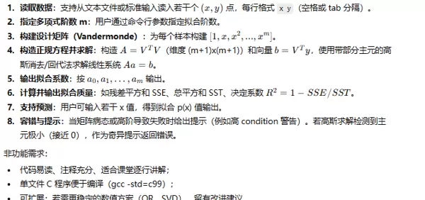 本项目旨在开发一个基于 C 语言的多项式拟合程序,具备以下特点: