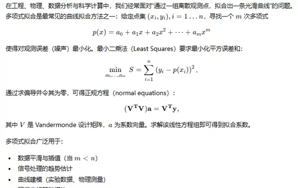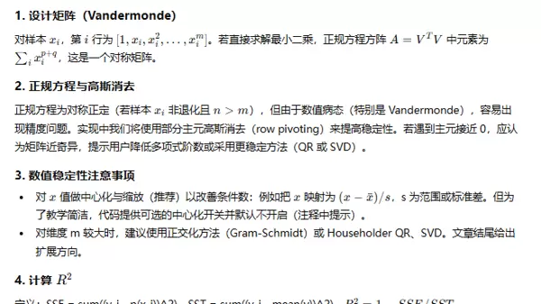 * 对高阶拟合或病态数据,建议使用 QR 分解或 SVD(文章最后给出扩展建议)。