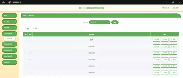 动物分类模块:建立标准化的动物档案库,依据物种(犬/猫/其他)、品种、年龄、健康状况等维度进行分类管理,支持关键词搜索与高级筛选功能。