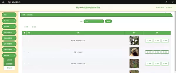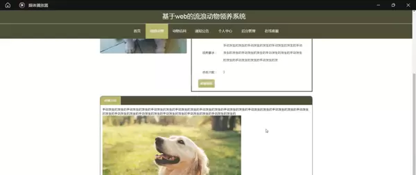 领养信息模块:用户提交领养申请时需填写居住环境、饲养经验等信息,系统根据地理位置、动物特性与用户偏好进行智能推荐匹配;救助站可在线审核并安排家访,全过程状态实时可追踪。