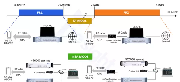 在宏基站与微基站中,混频器负责实现基带与射频信号之间的双向转换,支撑多频段、多制式网络运行。尤其对于5G NR这类要求大带宽与高阶调制(如1024QAM)的系统,采用直接上变频架构可大幅减少射频组件数量,降低系统复杂度。例如,基于5GNR FR1频段的基站模拟器可通过变频手段实现FR2频段信号的连接与测试。