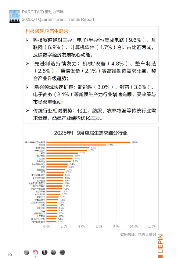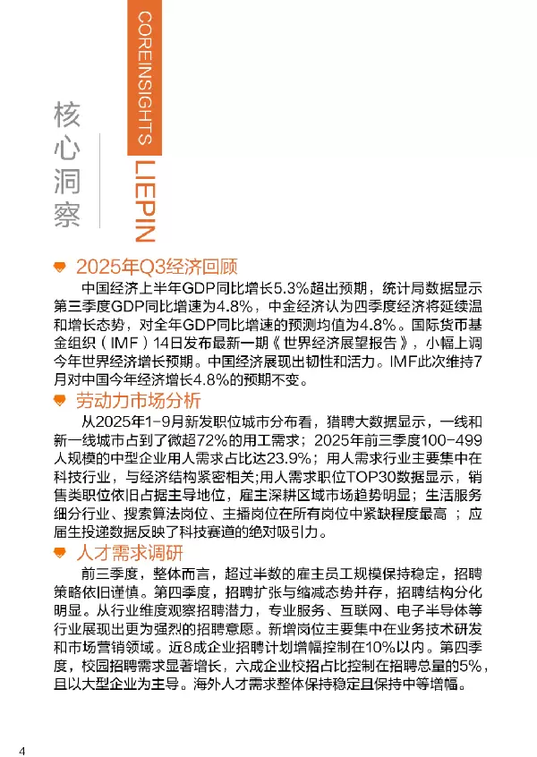 综合来看,2025年第四季度招聘市场在经济温和复苏背景下,展现出“稳健扩容与结构分化并存”的总体特征。技术引领、精准选才与多元用工模式正成为企业人力资源战略的核心方向,高端技术人才与复合型人才的供需矛盾尤为突出。