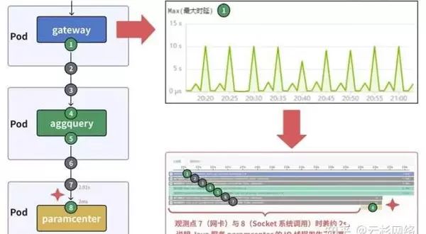 某银行核心交易系统的组件在压测过程中,每 5 分钟会出现数十次 2s 至 10s 的延迟尖刺。其调用链路为 gateway → aggquery → paramcenter,基于 SofaRPC 实现通信。以一次典型延迟事件为例,传统 APM 显示三段服务观测到的延迟分别为 2.05s、2.05s 和 2ms,初步判断瓶颈位于 aggquery 服务,但长时间排查未果,严重影响压测进度。