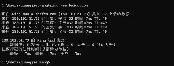 Ping是一个常用的网络连通性测试工具,可用于验证本地设备与目标主机之间的通信状态。例如执行“ping www.baidu.com”即可检测当前设备是否成功接入互联网。
