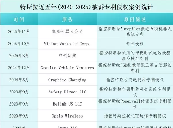 然而,即便拥有如此庞大的知识产权储备,特斯拉在过去五年中仍频繁面临专利侵权指控,涵盖自动驾驶、电池管理系统、车载通信系统等多个核心技术领域。此类纠纷频发,反映出专利资产在高端技术竞争中的战略地位日益凸显。