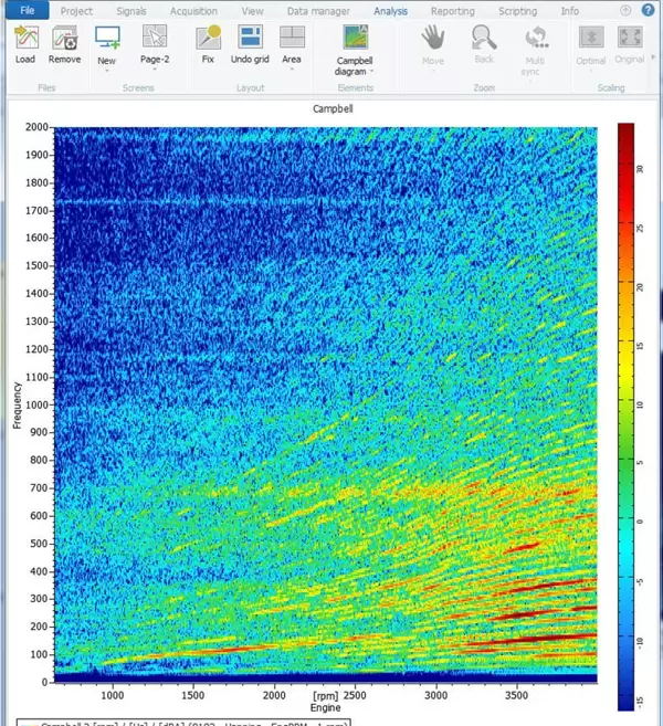 该模块采用FFT(快速傅立叶变换)技术和坎贝尔图进行频域分析,尤其在频率范围设定、色彩分级和图像缩放等方面提供高度可配置的功能。所有分析结果均可导出为标准ATFX格式,便于在其他专业工具中进一步处理。