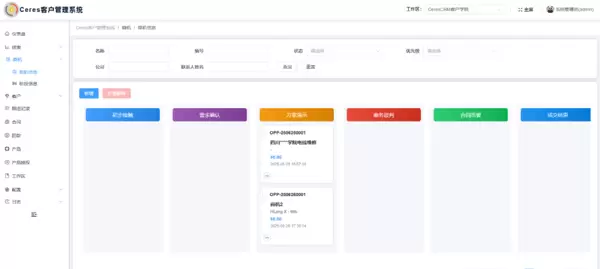 商机跟踪看板:以可视化销售漏斗形式呈现各阶段进展状态,辅助预测成交概率,助力销售目标达成。