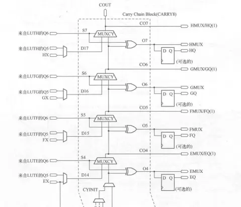 CLB内部集成了专用的快速超前进位链(Carry Chain),专用于高效执行加法与减法运算。该结构支持级联扩展,可构建多位宽算术逻辑单元。