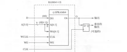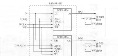 - 双端口模式:支持32×(1~4)位、64×(1~4)位、128×1位和256×1位的配置。图1.15显示了64×1位双端口分布式RAM的结构布局。