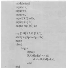 以下是一个宽度为4位、深度为16的分布式存储器的Verilog HDL代码描述示例:
