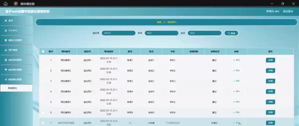 座位预约模块:学生可通过可视化界面查看座位分布图,选择空闲座位并设定预约时间段,系统自动记录预约信息并提示成功状态,提升操作便捷性。